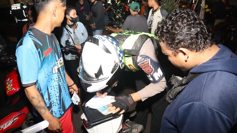 “Untuk satuan lalu lintas agar terus melakukan tindakan bagi pengguna knalpot yang tidak sesuai spesifikasi. Kemudian Rekan-rekan sekalian untuk sasaran pada malam hari ini dan malam-malam selanjutnya bahwa tetap kita laksanakan penindakan minuman keras, premanisme, obat-obatan keras, narkoba, judi online dan praktik-praktik prostitusi ilegal,” tegasnya.