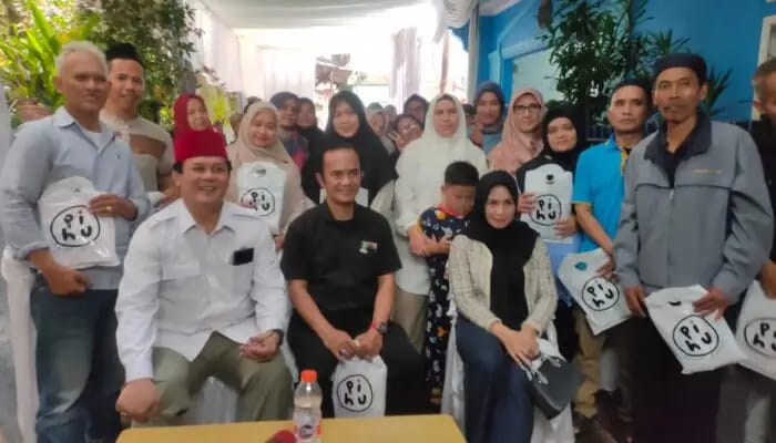 Foto bersama para Konstituennya yang mendukung anggota DPRD Kota Cimahi dan Ketua DPC Partai Gerindra Kota Cimahi H Bambang Purnomo (kedua dari kiri) penuh keakraban dan kekompakan Sabtu (22/11/2025). “Anak-anak sekarang banyak yang kecanduan gadget. Kami berharap ada ruang baca lengkap dengan buku-bukunya,” ucapnya.