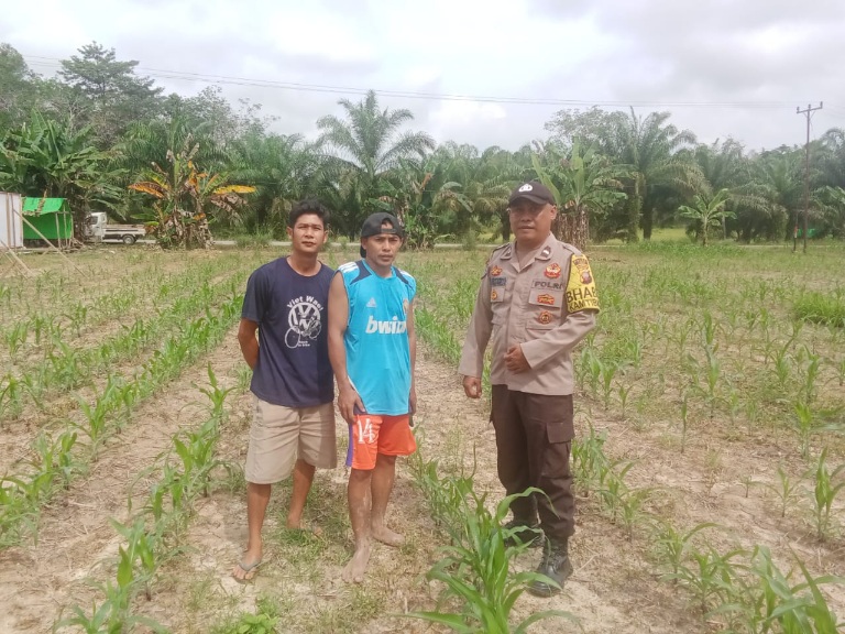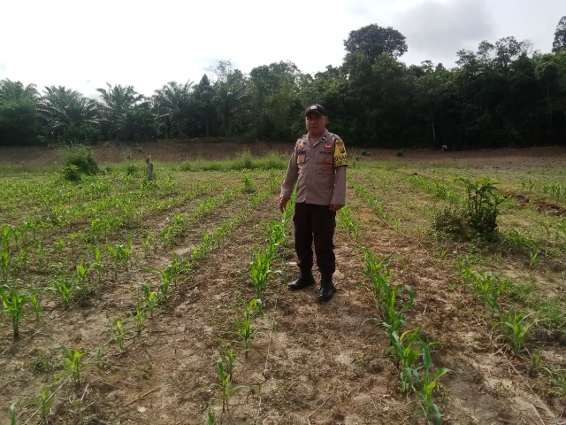 Bhabinkamtibmas Polsek Air Besar Pantau Perkembangan Tanaman Jagung Warga Binaan