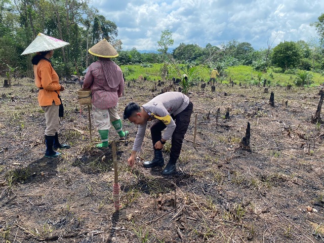Bintara penggerak Ketahanan Pangan Desa Mentonyek laksanakan penanaman jagung.