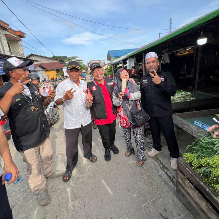 SINTANG, http://medianuansasinarnews.com- Calon Gubernur Kalimantan Barat nomor urut 2, Ria Norsan blusukan ke Pasar Masuka, Kabupaten Sintang, Minggu (13/10/2024) pagi.