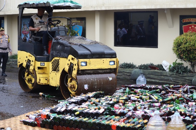 Setelah apel selesai dilanjutkan dengan pemusnahan knalpot brong dan minuman keras hasil kegiatan rutin yang dilaksanakan personel Polres Cianjur bersama Polsek Jajaran, dengan jumlah barang bukti diantaranta 8.070 botol dengan rincian 3.110 botol minuman keras berbagai merk dan 4.960 miras oplosan dalam kemasan botol maupun kantong plastik, serta 4.903 buah knalpot brong hasil penindakan oleh Satlantas Polres Cianjur dan Polsek Jajaran.