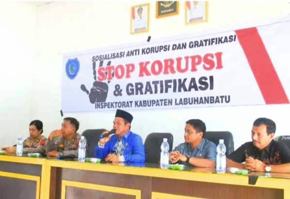 Labuhanbatu/Sumut, http://medianuansasinarnews.com- Inspektorat Kabupaten Labuhanbatu bersama Polres Labuhanbatu dan Kejaksaan Negeri Labuhanbatu melakukan sosialisasi anti korupsi dan gratifikasi di Aula Kantor Dinas Kependudukan dan Pencatatan Sipil Labuhanbatu, Jalan Meranti, Kecamatan Rantau Utara. Kamis (18/07/2024).