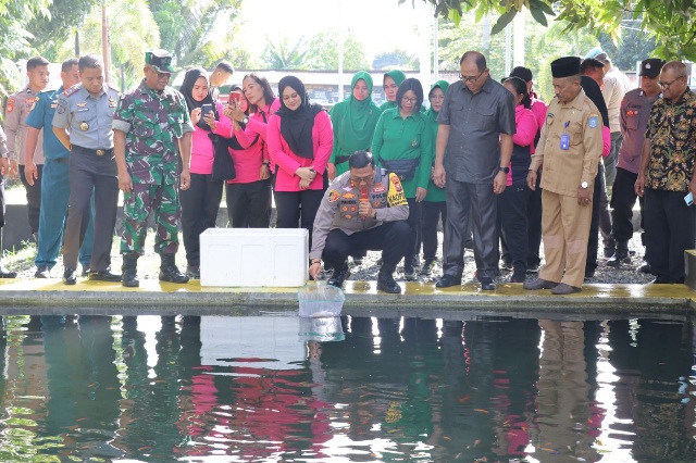 Kapolres Bersama Forkopimda Halmahera Utara Tebar 5000 Benih Ikan Dukung Program Asta Cita Bidang Ketahanan Pangan Nasional
