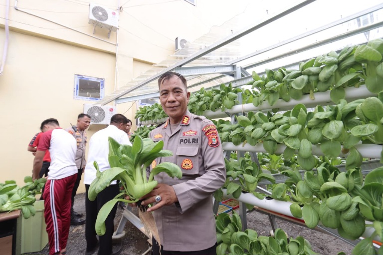 Kapolres Ternate Panen Perdana Tanaman Hidroponik untuk Ketahanan Pangan