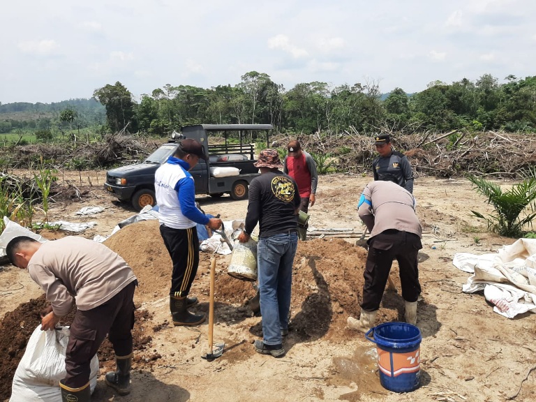 Kapolsek Mandor Bersama Anggota Laksanakan Pengolahan Lahan Jagung Percontohan di Desa Pongok