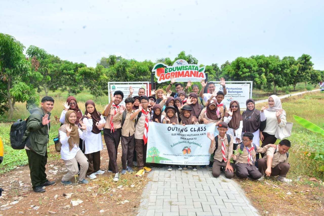 Indramayu, http://medianuansasinarnews.com- Terpancar raut wajah penuh rasa ingin tahu dari siswa/siswi SLB Mutiara Hati, Indramayu saat mendatangi Kawasan Eduwisata Agrimania yang merupakan Kebun Mangga program pemberdayaan Masyarakat dari Kilang Balongan. Kedatangan para pelajar istimewa berkebutuhan khusus ini adalah untuk melaksanakan program sekolah yaitu pembelajaran luar kelas.