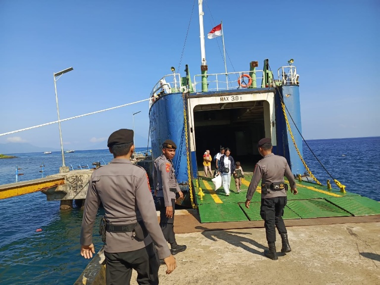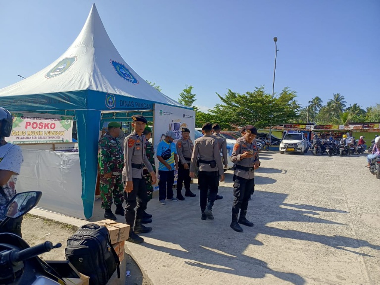 Patroli Dialogis Polda Maluku Utara di Pelabuhan Ferry Galala untuk Memantau Arus Balik Mudik