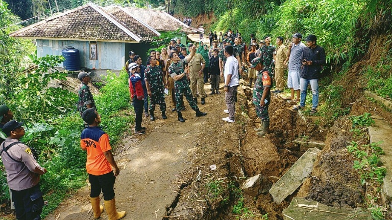 Cianjur, http://medianuansasinarnews.com- Komandan Korem 061/Sk, Brigjen TNI Faisol Izzudin Karimi, S.E., yang didampingi ibu Ketua Persit KCK Koorcab Rem 061 Ny. Yudith Faisol Izzudin melakukan peninjauan langsung ke lokasi bencana alam tanah longsor dan pergerakan tanah yang menerjang dua Desa yakni kp. Cileungsir Desa Wargasari dan Sukaraharja, Kecamatan Kadupandak Kabupaten Cianjur. Senin, (25/11/2024).