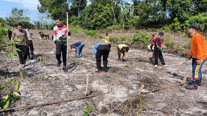 Penanaman Bibit Jagung Hibrida R1 Nusantara Oleh Personil Polsek Ngabang