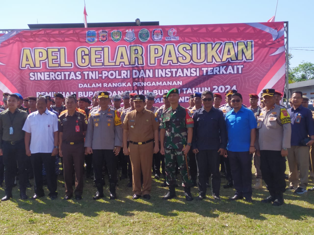 Kapolres Pangandaran AKBP. Mujianto, S.I.K., M.H., Menyampaikan, “kami polres Pangandaran dalam pelaksanaan pengamanan pilkada serentak 2024 menurunkan 428 personil untuk 10 Kecamatan dan di backup oleh kodim 0625 Pangandaran, hal tersebut dalam pengamanan sampai dengan selesai penetapan bupati dan wakil bupati terpilih,” kata Kapolres Pangandaran AKBP. Mujianto, S.I.K., usai gelar pasukan Operasi Mantap Praja Lodaya 2024, yang di hadiri Bupati Pangandaran H.Jeje Wiradinata, Dandim 0625 Pangandaran Letkol. Inf. Indra Mardiyanto Subroto, M.I.P., Ketua KPUD Kabupaten Pangandaran, Ketua Bawaslu Kabupaten Pangandaran, jajaran perwira dan para kapolsek serta anggota polres Pangandaran, jajaran perwira dan para danramil serta para anggota kodim 0625 Pangandaran, para kepala SKPD lingkup pemerintahan Kabupaten Pangandaran, para BUMD dan lintas sektoral Kabupaten Pangandaran, anggota perwakilan organisasi dan LSM Kabupaten pangandaran, bertempat alun-alun Parigi jalan Raya Cijulang -pangandaran (20/08/2024)