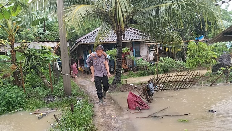 Personel Polsek Agrabinta Evakuasi Warga Terdampak Banjir di Kecamatan Agrabinta