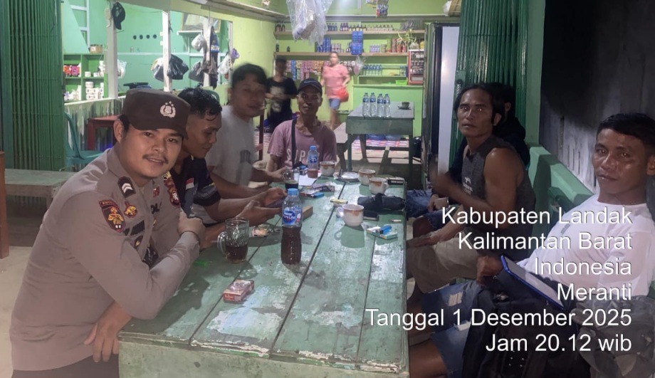 Landak, http://medianuansasinarnews.com- Polsek Meranti ~ Polres Landak ~ Polda Kalbar. Pada saat melaksanakan kegiatan patroli malam hari, personil Unit Samapta Polsek Meranti duduk Santai bersama warga yang berada di salah satu warung Kopi, kehadiran anggota Polsek Meranti menambah suasana semakin asyik sambil ngobrol, dalam kegiatan patroli dialogis sambil menyampaikan himbauan Kamtibmas sehingga terjalin tali silaturahmi antara anggota Kepolisian dengan warga masyarakat. Senin (01/12/2025).