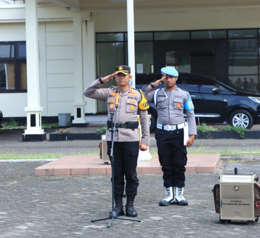 Ternate, http://medianuansasinarnews.com- Polda Maluku Utara menggelar apel pengecekan personel pengamanan Rapat Pleno Terbuka penetapan pasangan Gubernur dan Wakil Gubernur terpilih di Sofifi. Kamis (06/02/2025). Apel tersebut dipimpin oleh Plh. Kapolresta Tidore, Kombes Pol. Edy Sugiharto, S.E., M.H.,