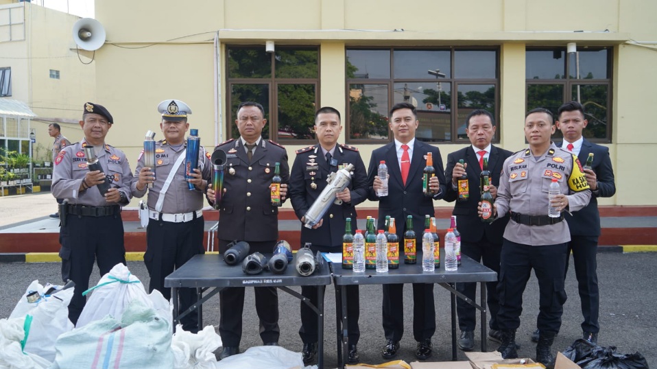 Wakapolres Cianjur menyampaikan, Polres Cianjur bersama Polsek Jajaran berhasil mengamankan sebanyak 368 buah knalpot yang tidak sesuai standarisasi atau spesifikasi teknis dan juga 266 botol atau kantong minuman keras (miras).