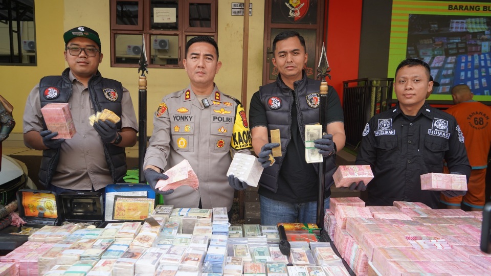 “Kelima orang yang berhasil kita amankan salah satunya berjenis kelamin perempuan. Kami sampaikan juga bahwa uang dan barang bukti ini jika dijumlahkan satu triliun ini dalam bentuk berbagai macam mata uang diantaranya ada yang Rupiah, Dolar, Yuan dan mata uang lainnya yang berhasil kita sita,” jelas Kapolres Cianjur.