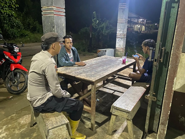 Patroli malam yang dilakukan Polsek Meranti tidak hanya sekedar pemantauan situasi kamtibmas saja, namun dialog dengan warga juga dilakukan.