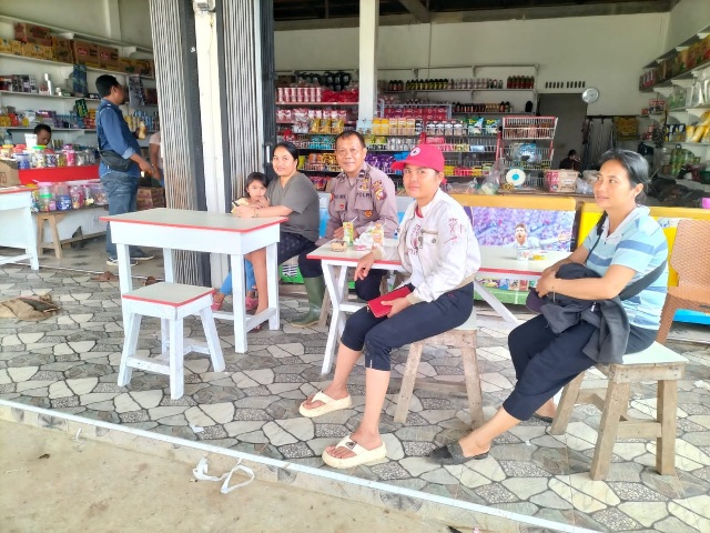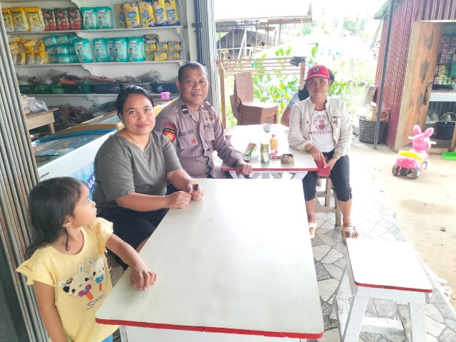 Dalam kesempatan tersebut, Aipda H. Rimbun duduk bersama warga, menyampaikan imbauan kamtibmas, serta berdialog secara langsung.