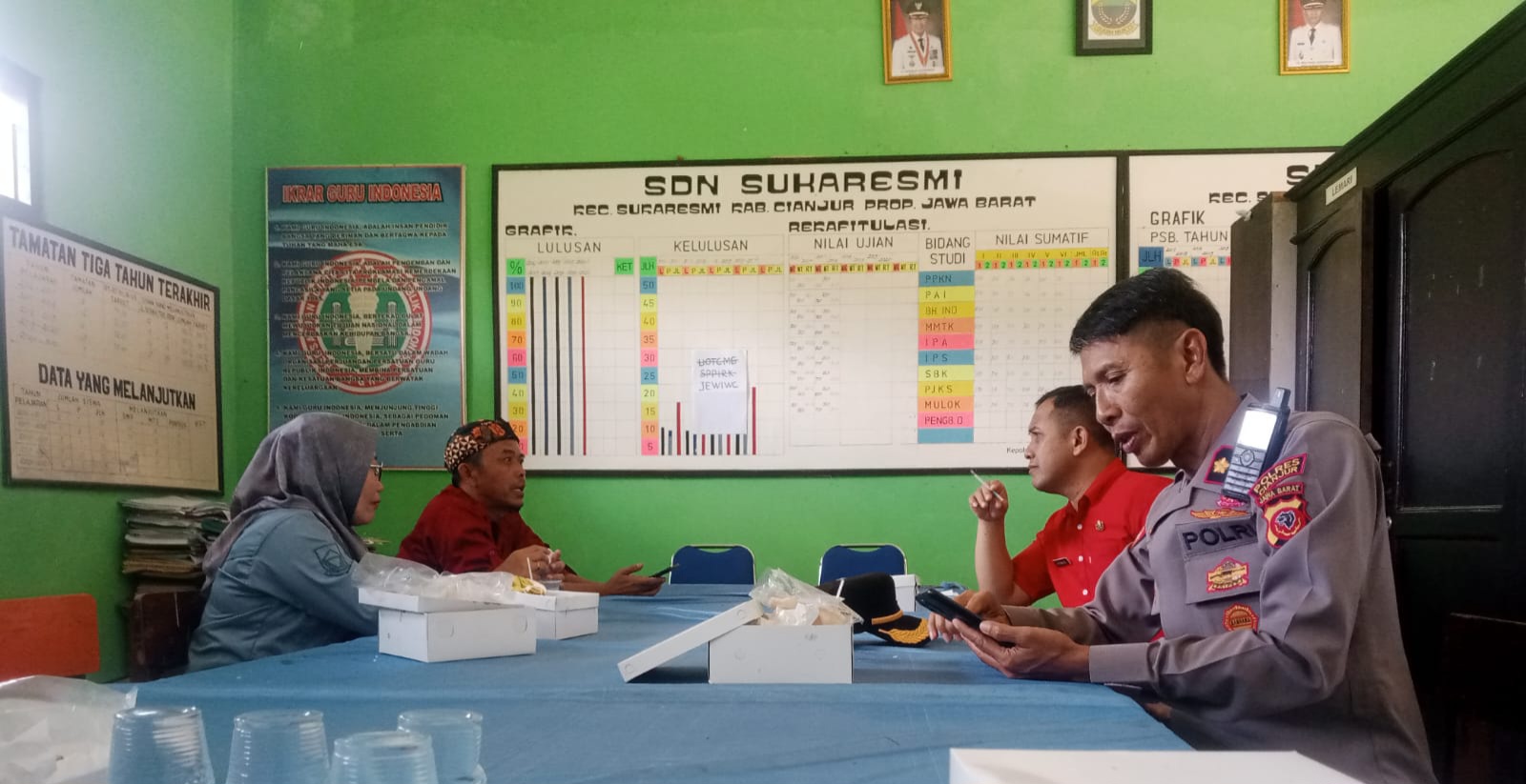 “Dalam kegiatan ini, kami berkomitmen untuk terus mendukung program Pemerintah, memperbaiki gizi anak-anak dan memberikan makanan bergizi gratis. Kegiatan ini juga sebagai ajang silaturahmi, menghargai peran guru yang luar biasa, dan memastikan anak-anak berhak hidup sehat untuk mewujudkan cita-cita mereka,” tutup Akp Sudarsono, S.Pd., selaku Kapolsek Sukaresmi.
