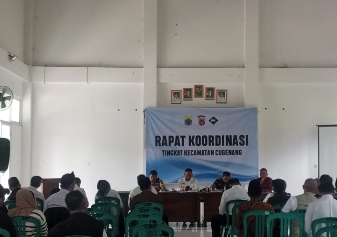 Camat Cugenang Bapak Ali Akbar mengatakan, “pada hari ini kami melaksanakan Rapat koordinasi dengan seluruh kepala Desa terdiri dari (16) Desa se-Kecamatan Cugenang, para kepala Organisasi Pemerintah Daerah (OPD) beserta elemen masyarakat lainnya dalam rangka menyampaikan beberapa Informasi penting melakukan Evaluasi terhadap program-program yang sudah berjalan,” paparnya