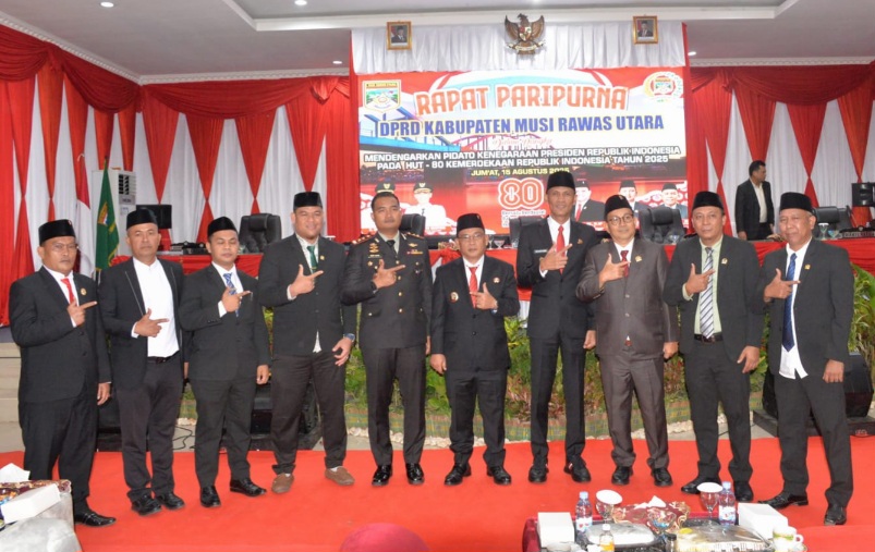 Muratara, http://medianuansasinarnews.com- Dalam rangka memperingati hari ulang tahun kemerdekaan Republik Indonesia yang Ke-80 Dewan Perwakilan Rakyat Daerah Kabupaten Musi Rawas Utara Menyelenggarakan Rapat Paripurna istimewa yang di selenggarakan di ruang sidang utama DPRD Kabupaten Musi Rawas Utara. Provinsi Sumatera Selatan. Jumat (15/08/2025).