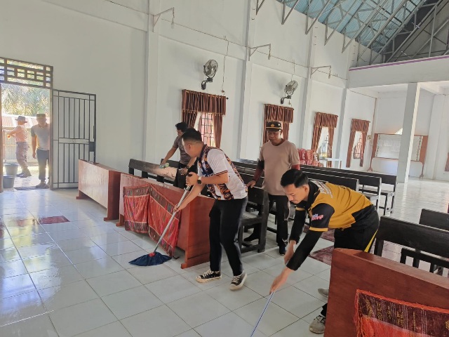 Lebih lanjut, Kapolres menambahkan bahwa kegiatan ini juga bertujuan mempererat tali silaturahmi antara Polri dan tokoh-tokoh agama di Kabupaten Landak, sekaligus menciptakan suasana kondusif menjelang peringatan Hari Bhayangkara. “Kegiatan ini bukan hanya soal membersihkan lingkungan gereja, tetapi juga membangun komunikasi dan sinergi yang baik antara aparat keamanan dengan tokoh agama dan jemaatnya,” tambahnya.