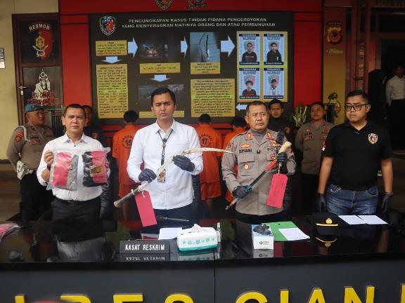 “Setelah melakukan olah TKP dan memeriksa beberapa saksi, kami berhasil mengidentifikasi pelakunya dan setelah 3 jam kejadian, para pelaku atas nama Rendi Renaldi, Ilham Nurahman, Dasep Rian Ramdani dan Muhamad Galuh Septiana berhasil diamankan oleh tim Satreskrim Polres Cianjur beserta barang bukti berupa senjata tajam jenis samurai dan celurit,” ucapnya.