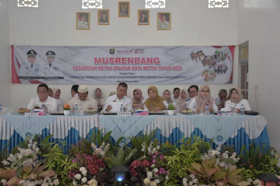 Lampung/Kota Metro, http://medianuansasinarnews.com- Pemerintah Kota Metro mengadakan Musyawarah Rencana Pembangunan (Musrenbang) tingkat Kecamatan yang berlangsung di Kecamatan Metro Selatan, Rabu (12/02/2025). Acara ini bertujuan untuk membahas dan menyepakati usulan pembangunan yang menjadi prioritas di tingkat Kecamatan.