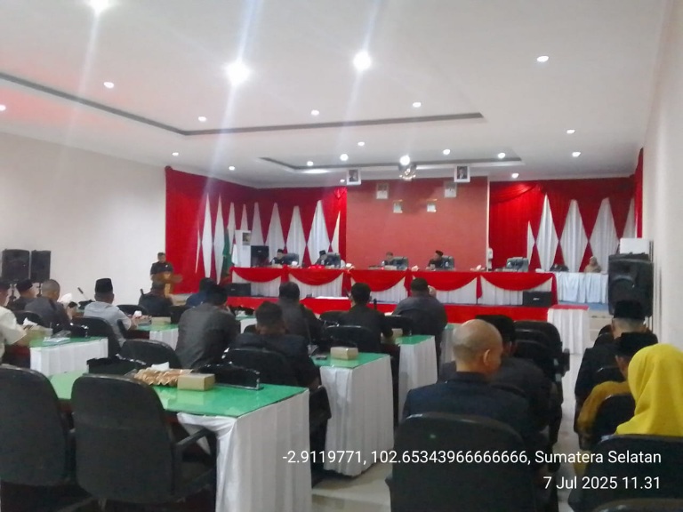 Muratara, http://medianuansasinarnews.com- Dewan Perwakilan Rakyat Daerah (DPRD) menggelar Rapat Paripurna dalam rangka penjelasan dan penyampaian rancangan perubahan terhadap Kebijakan Umum Anggaran dan Prioritas Platfom Anggaran Sementara (KUA PPAS) tahun anggaran 2025 bertempat di ruang rapat paripurna DPRD Kabupaten Musi Rawas Utara Provinsi Sumatera Selatan. Senin (07/07/2025).