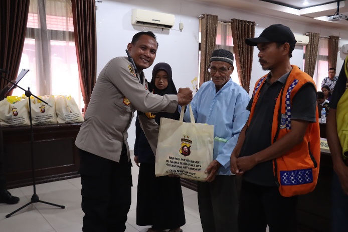 Di Polres Landak, kegiatan ini dihadiri oleh Kapolres Landak AKBP Siswo Dwi Nugroho, S.H., S.I.K., beserta Pejabat Utama (PJU) Polres Landak, Staf Ahli Bupati Landak Nikolaus, S.H., anggota DPRD Kabupaten Landak Aris Ismail, S.E., serta perwakilan dari berbagai instansi, organisasi mahasiswa, masyarakat, santri pondok pesantren, pekerja ojek, juru parkir, dan anak yatim-piatu.