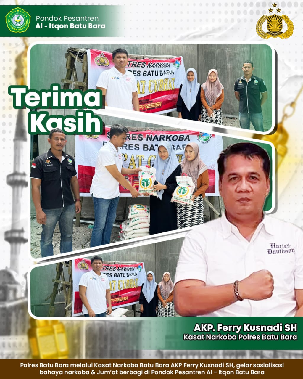 Pengasuh Pondok Pesantren Al-Itqon, Ustadz Milhan, menyambut baik kegiatan ini dan mengucapkan terima kasih kepada Kasat Narkoba Polres Batu Bara beserta jajarannya.